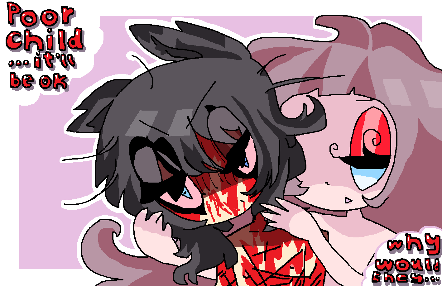 They immediately started having health issues. Their parents were overworked with the continuous illnesses that they legally signed them over to an infertile woman who worked as a whore. She raised them will love & care but during illness bouts she didn't really know what to do, she had good intentions and truly cared about them as if they were her own. She didn't know how to help them & would get frazzled. Being inside all the time to fight more severe illness, they weren't able to go to school or learn how to interact with others, They became very sheltered. They would read books to learn about the outside. They never left their room. Their Mama would one day stop coming home from work. They stayed in their room, at first not noticing but eventually taking notice, they almost starved & malnourished themself to death until they fell out of their bed and pulled themself to their front door, they wanted to call emergency but couldn't remember the numbers, then passed out from overexertion.